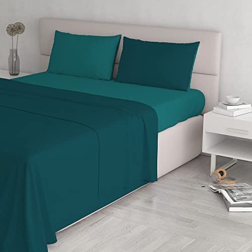 Italian Bed Linen Sängset i naturlig färg (platt 180 x 300, dra-på-lakan 120 x 200 cm + örngott 52 x 82 cm), bensinflaska grön, 100% bomull, kungsblå/ljusblå, liten dubbel
