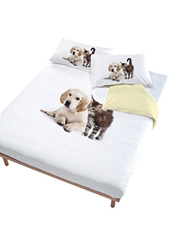 Italian Bed Linen Digital täcke Set (väska 250x200cm + 52x82cm), csat, hund/katt kräm, dubbel