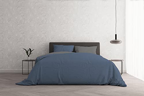 Italian Bed Linen Natural Color sängkläder set, 100% bomull, mörkblå/ljusgrå, dubbel