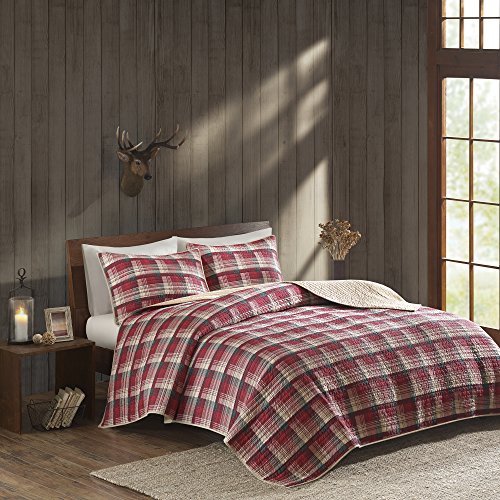 Woolrich Reversible Quilt Cabin Lifestyle Design - All Season, Breathable Coverlet Bedspread Bedding Set, Matching Shams, Oversized King/Cal King, Tasha Plaid Red/Tan 3 Piece