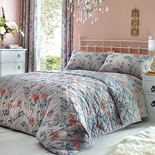 Comfort Spaces Enya 3 Piece Quilt Coverlet Bedspread Ultra Soft Floral Printed Pattern Bedding Set, King, Aqua-Grey,CS14-0064