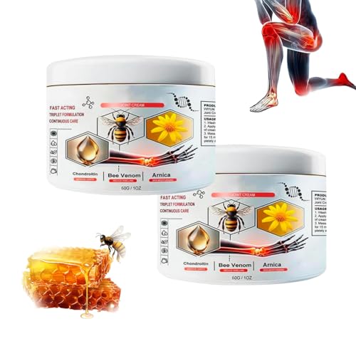 Bee Venom Creme, 2 bigift gemensam benvårdskräm, artros lugnande lindring ledvärk, muskelsmärta, ömma muskler svullnad efter blåmärken skador Bee Venom Pain Cream