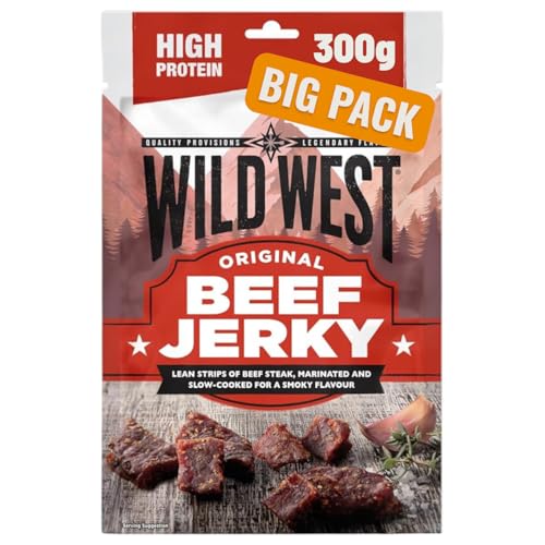 Wild West Beef Jerky, Original 300g high Protein torkat kött, Beef Jerky Protein Snack, torkat nötkött