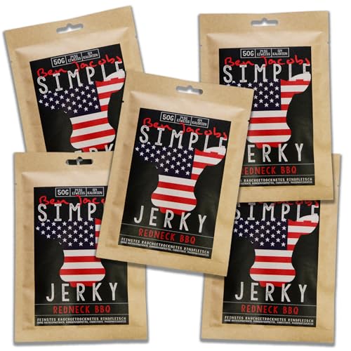 Craftsman Beef Jerky ORIGINAL 250 g (5 x 50 g) | Torrt kött från Tyskland – Bayern | American Jerky Beef Set | 100 % nötkött | Original | Premium Beef | Meat Snack Made in Germany