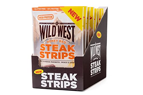 Wild West Beef Jerky, Honung BBQ (steak strips) 16x25g high Protein torkat kött, Beef Jerky Protein Snack, torkat nötkött