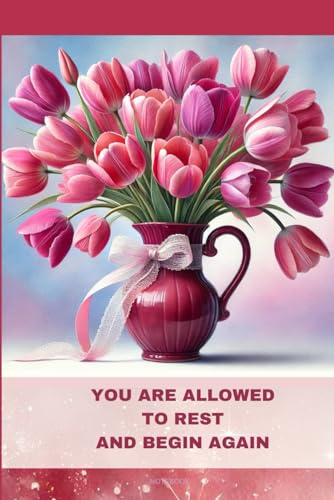 Floral Notebook with Motivational Quote on the Cover:: YOU ARE ALLOWED TO REST AND BEGIN AGAIN; PINK TULIPS JOURNAL FOR WOMEN AND TEENAGERS