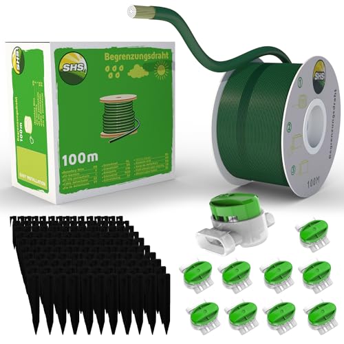 SHS-Yard 100 m gränskabel + 300 jordspett för robotgräsklippare gräsklippare gräsklippare tillbehörsset begränsningskabel för sökkabel – kompatibel med Gardena/Bosch/Husqvarna/Worx/Honda/ROBOMOW/iMow/Ø2,7 mm