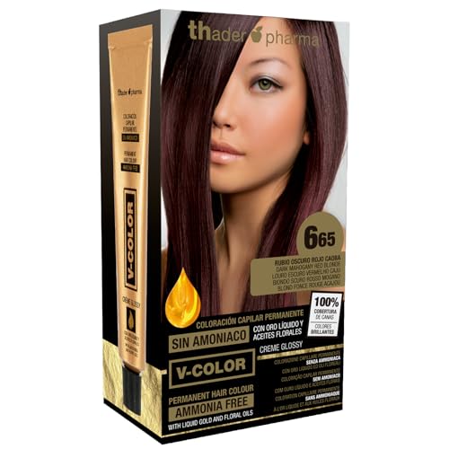 Thader TH Pharma Ammoniakfritt färgkit för en behaglig lukt med flytande guld, färg 6,65 mörkblond mahognyröd