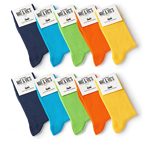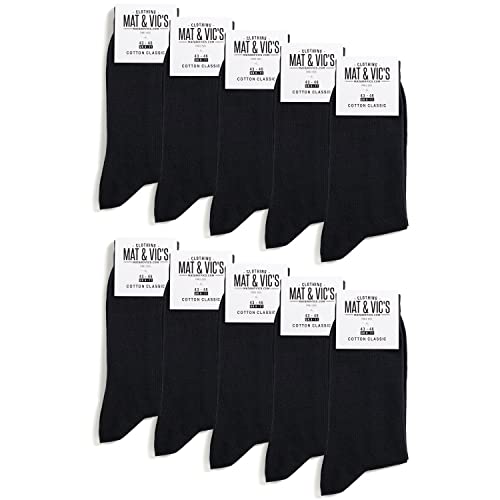 Mat & Vic's 10 par strumpor för honom och henne, bomull klassisk, bekväm utan pressfals, behaglig komfortlinning - Crew-strumpor i bomull Män Kvinnor