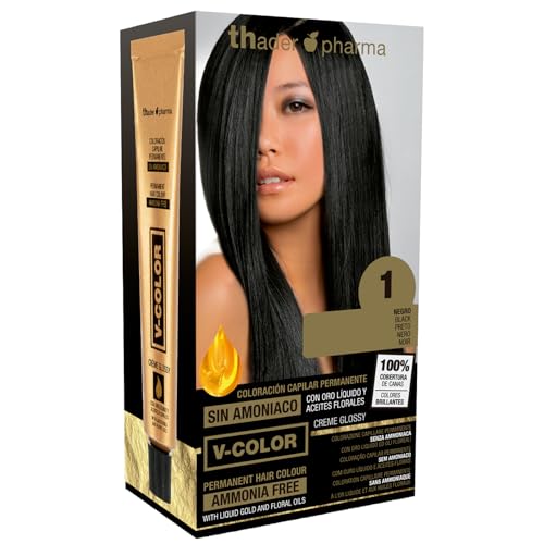 Thader TH Pharma Ammoniakfritt färgkit för en behaglig lukt med flytande guld, färg 1 svart
