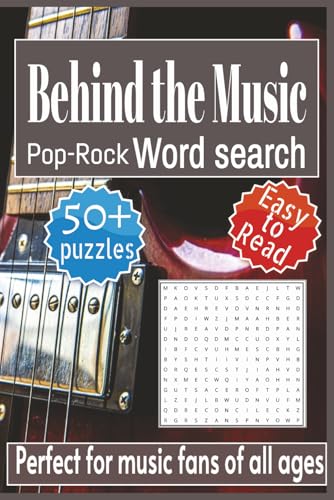 Behind the Music: Pop-Rock, Word Search, Easy to Read | 6×9 inches, 110 pages with 50+puzzles and solutions | Perfect as a gift for Vacations, Holidays or Stocking Stuffer.