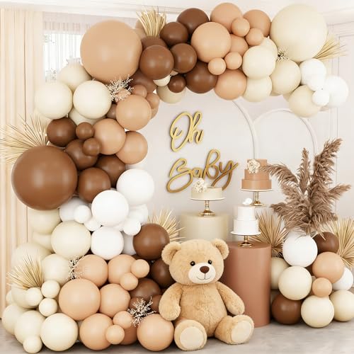Bruna ballonger födelsedagsfestdekoration, ballong girlang bestående av ballonger vit, brun och beige, ballongbåge för babyparty dekoration pojke, babyshower, första födelsedagen pojke,