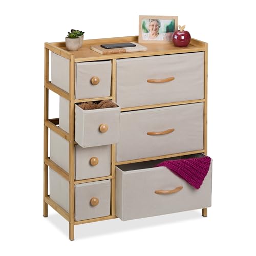 Relaxdays Byrå, bambu, 7 tyglådor, hall, sovrum, H x B x D: 73 x 61,5 x 32,5 cm, lådskåp, natur/beige