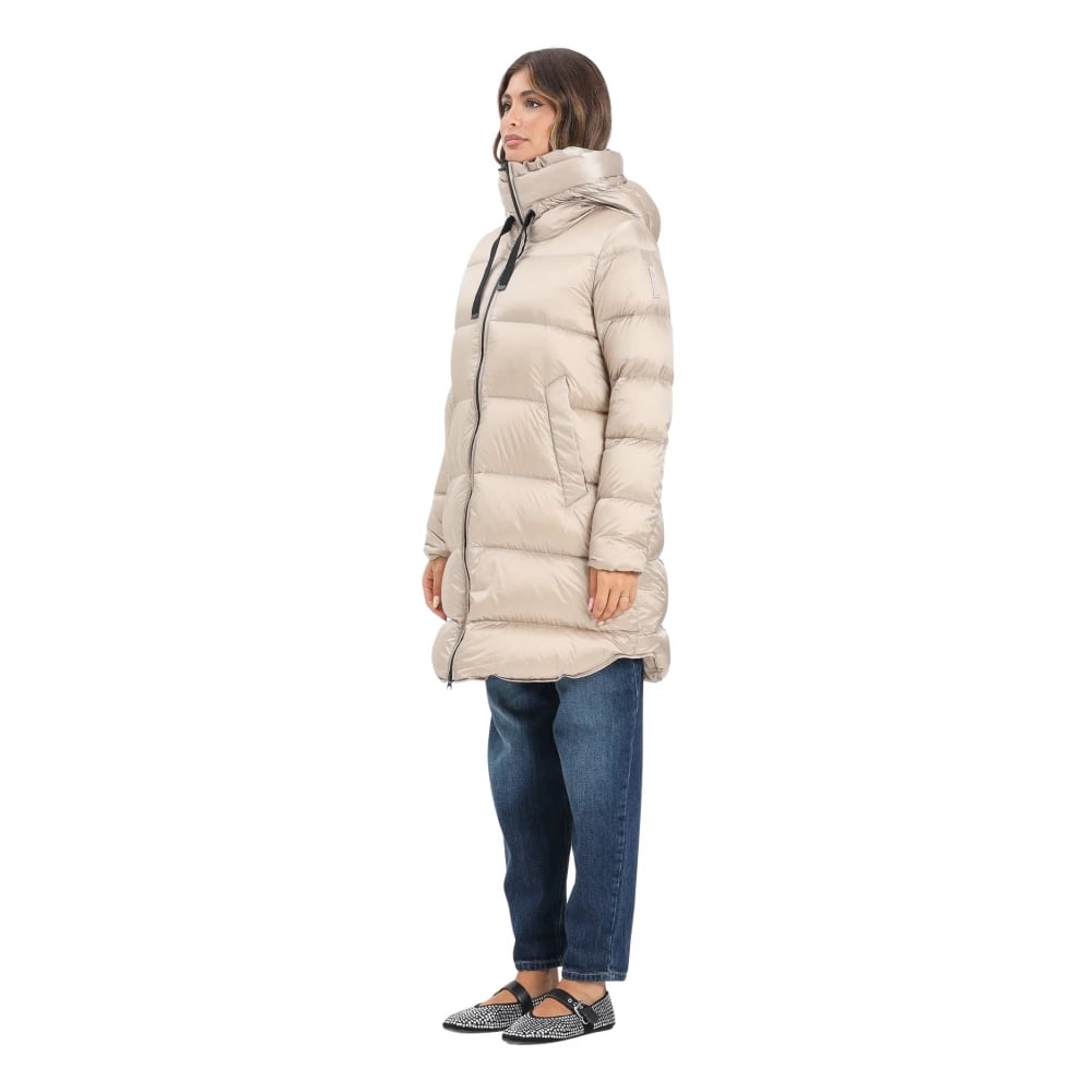 BomBoogie, Kappor & Rockar , Dam, XL, Polyester, Beige Lång Dunjacka för Kvinnor