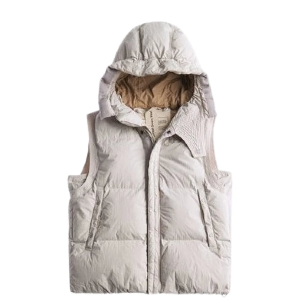 QLXYYFC Lång Dunväst för Kvinnor med Luva, Varm Lång Väst, Enfärgad, Ärmlös, Vadderad Väst, Lätt Vinterjacka, Vinterväst, Dunjacka (Color : Beige, Size : L)