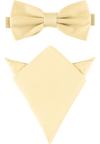HISDERN Självknuten fluga och ficknäsduk enfärgad smoking fluga med näsduk set för bröllopsfest bal flugor, BEIgE, en storlek