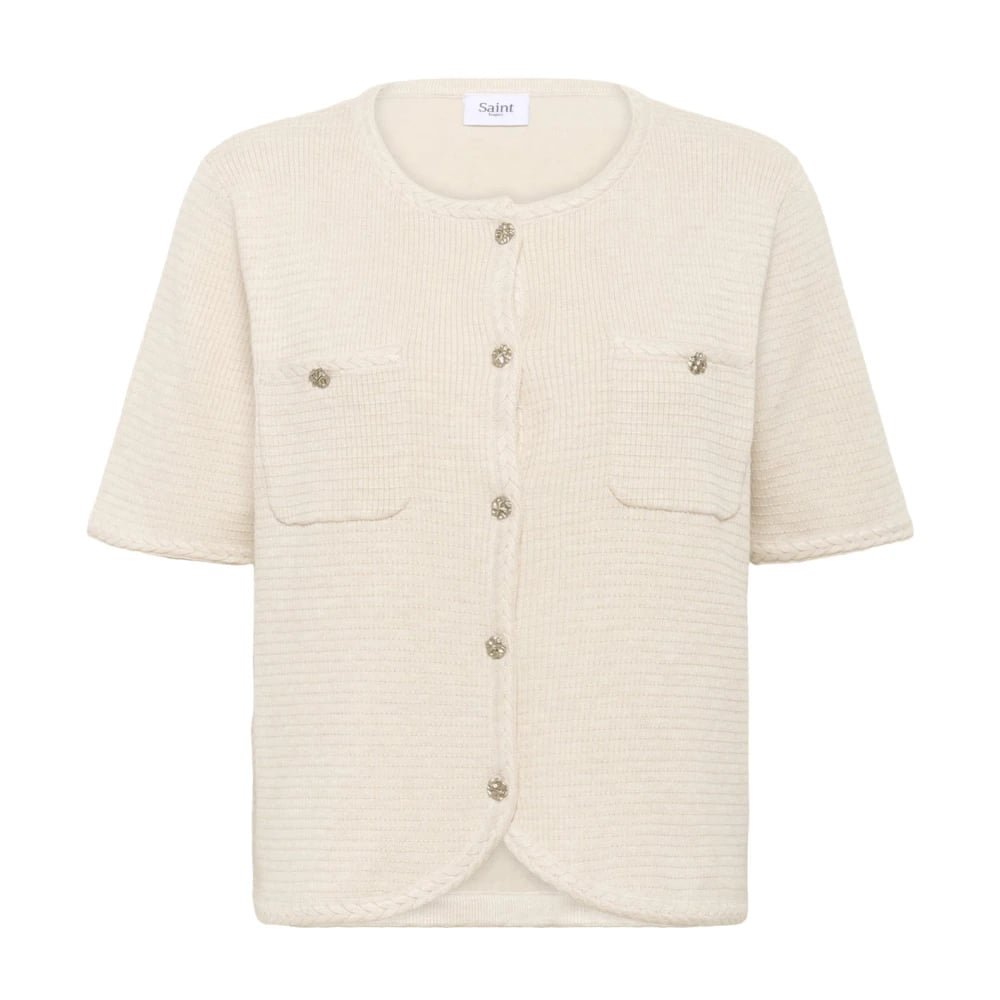 Saint Tropez, Stickade Tröjor , Dam, 2Xl, Kortärmad Cardigan Fog Melange