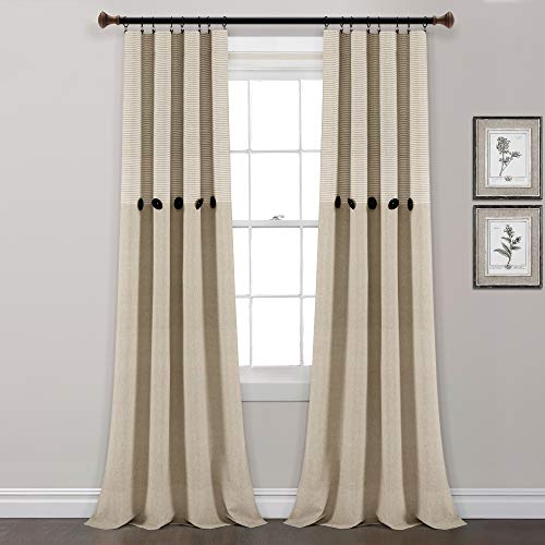 Frodig dekor beige linne bondgård vävd bomull fönster gardin panel set, knapprand, garnfärgat (213 cm x 102 cm)
