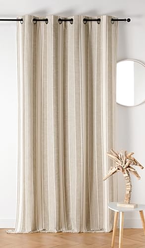 Linder 0513/FE/375FR gardin, med ögla, Baja-linne, 145 x 265 cm, randiga, naturliga färger