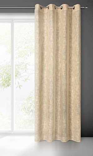 Eurofirany Linne optisk gardin lila med öljetter – 1 st. – Eco boho naturlig fönstergardin, vardagsrum, sovrum, 140 x 250 cm, beige
