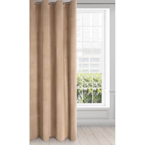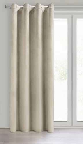 Eurofirany – Mörkläggningsgardiner, gardin ogenomskinlig, gardiner fönster balkongdörr – sovrum vardagsrum dekoration, gardin av sammet, 100% mörkläggning, 140 x 250 cm, öljettgardin – NITA – beige
