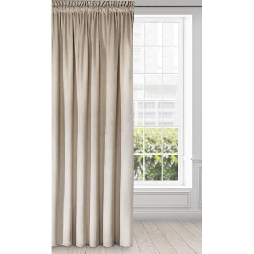Eurofirany villa gardin sammet mjukt veckband – 1 st. Elegant gardin tjock 290 g/m2 elegant slät enfärgad fluffig modern klassisk vardagsrum sovrum lounge, beige, 140 x 270 cm