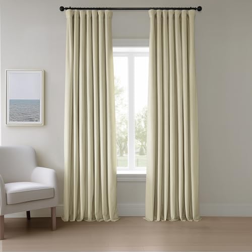 Tjock Heritage-gardin i sammet från HPD Half Price Drapes, mörkläggningsgardin för sovrum och vardagsrum (1 längd), bredd: 127 cm (50 tum), längd: 244 cm (96 tum), färgnamn: ”Light Beige”