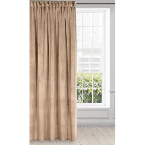 ROOM99 sammetsgardin med veckband charmig 140 x 260 cm bred x höjd skjutgardiner gardin vardagsrum sovrum sammet velour beige, 1 st