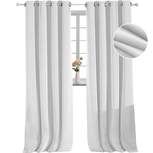 YSTELLAA Sammet 100% Mörkläggningsgardin 2 Delar, 140×145CM, Ogenomskinliga Gardiner Med Öljetter, Sovrums Värmeisolerande Gardiner, Värmeisolerande Kall Och Varm Gardin, Beige Blanc
