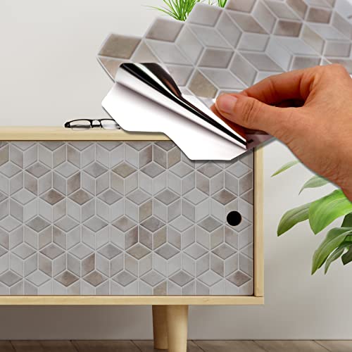 WALPLUS 28,5 x 14 cm @ 12 enheter beige sten hexacube väggkakelklistermärke stänkskydd kakel färg klistra på kakel skala och klistra fast självhäftande väggplattor klistermärken för kök badrum