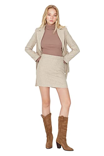 TRENDYOL Dam mini A-linje rak vävd kjol, Beige, 42