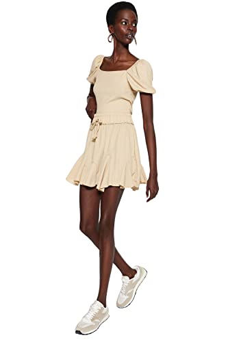 Trendyol Kvinnors linne strukturerat bälte detaljerad kjol kjol, beige, 42