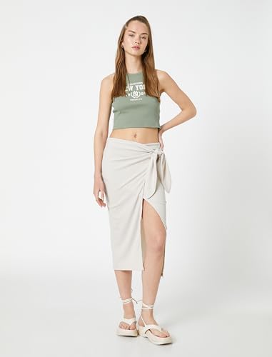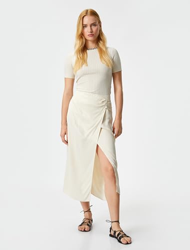 Koton kvinnor viskos mix dragna midi slit kjol, Beige (053), 38