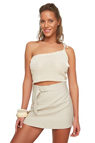 Trendyol Kvinnors linne strukturerat bälte detaljerad kjol kjol, beige, 34