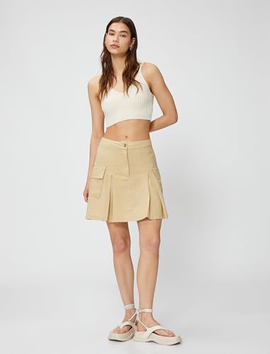 Koton dam vikbar ficka detalj linen mix cargo kjol, Beige (051), 34