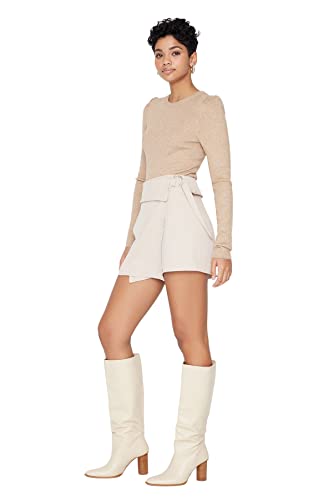 Trendyol Kvinnors linne strukturerat bälte detaljerad kjol kjol, beige, 36