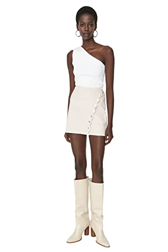 Trendyol Dam dam mini wrapover A-linje vävd kjol, beige, 38, BEIgE, 64 SE