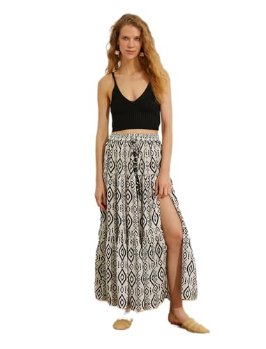 Koton dam dragsko etnisk mönstrad midi kjol, Beige design (0d5), 34