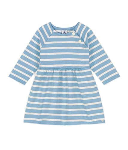 Petit Bateau baby-flicka långärmad klänning, Blå azul/beige montelimar, 18 månader