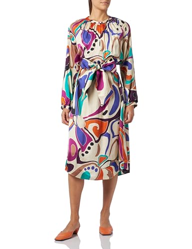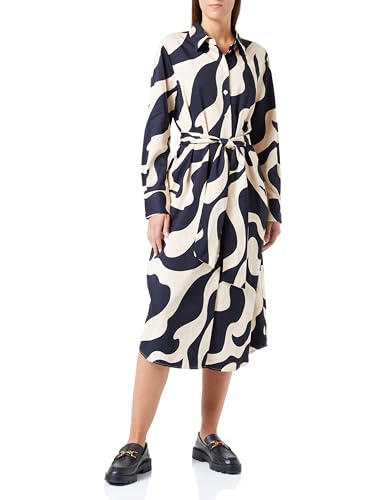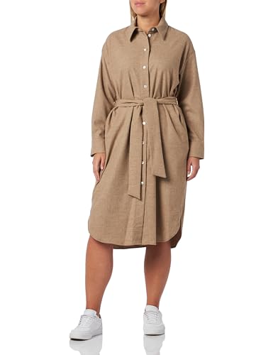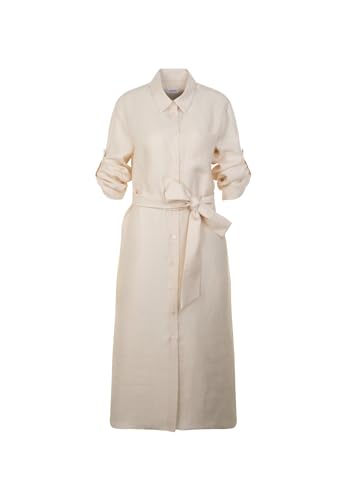 Sidenklistermärken damer blusklänning med knytbälte – klänning – överdimensionerad passform – midiklänning – skjortbluskrage – långärmad – 100% viskos, Beige, 46 SE