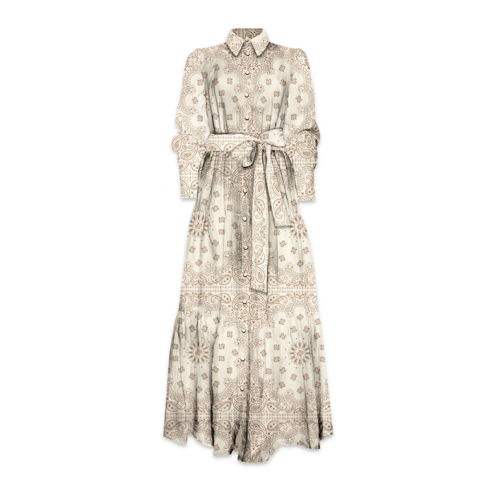 MC2 Saint Barth, Klänningar , Dam, M, Beige Bandanna Print Klänning med Långärmad