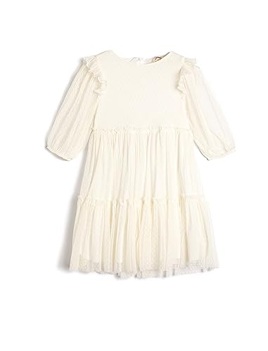 Koton Girls's Midi tyll ruffle detalj långärmad rund krage fodrad klänning, Ecru (010), 4-5 år