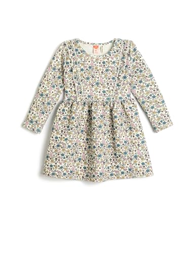 Koton Baybgirls blommig långärmad crew neck ruffled och glitter detalj borste inredning klänning, Ecru Design (0d1), 18-24 Monate