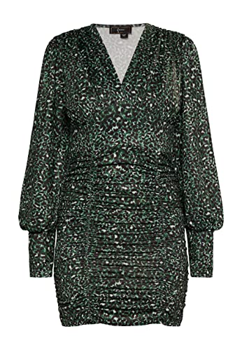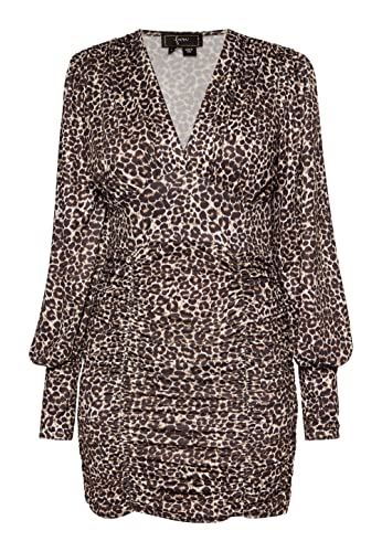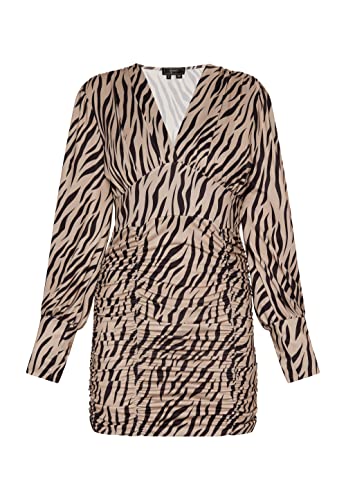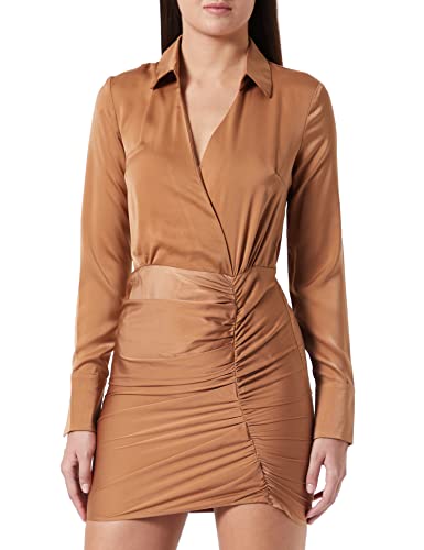 Pretty Darling kvinnors sand satin V-hals långärmad rynkad bodycon klänning ledig, Sand, 34 SE