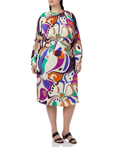 Gerry Weber Dam prickig midiklänning med midjeband långärmad, manschetter klänning tyg midiklänning prickig vadlång, Ecru/vit/svart tryck, 44