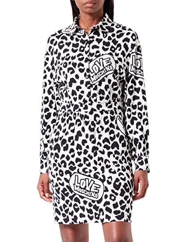 Love Moschino dam långärmad skjorta flytande stretch viskos tyg klänning, Beige svart, 42