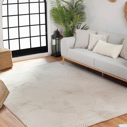 CARPETIA vardagsrum sovrum enorm orientalisk glänsande ornament stor XXL modern ädel kort lugg matta designer matta kräm beige 240 x 340 cm