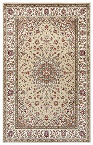 Nouristan Design orientalisk matta för entré (120 x 170 cm, 100% polypropylenvärmeset, slitstark och lättskött, runt kedjan, perfekt för alla bostadsutrymmen, golvvärme) beige-grädde