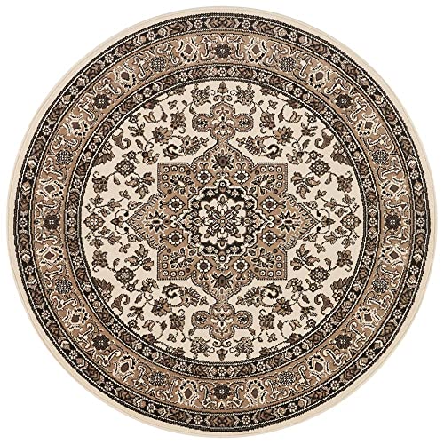 Teppich-Traum rund matta till vardagsrum eller sovrum. Designermatta med kort lugg, orientalisk, elegant dekoration, glänsande effekt, slingrande, kräm/beige, 160 cm