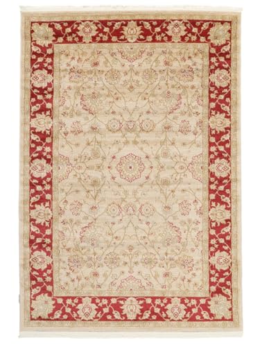 VIMODA Klassisk orientalisk matta, tätt vävd, för vardagsrum, röd och beige, mått: 200 x 290 cm